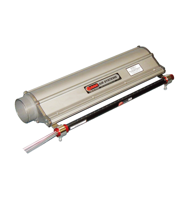 風⼑出風⼝安裝適當尺⼨的靜電消除棒,⽤來去除⼯件上的靜電。