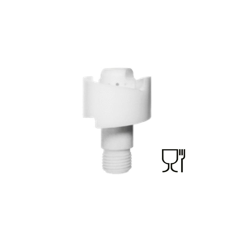 UBD A旋轉噴頭,特殊設計的旋轉噴灑機構,能夠將液體均勻的噴灑在桶槽上,確保良好的覆蓋性,極短的清洗週期與較少的⽤⽔量,對於⽤⽔量管制嚴格的作業環境,是最佳的選擇。鐵弗龍的材質,讓UBD A旋轉噴頭幾乎可以適合任何的化學藥液,⼤尺⼨的異物通過徑,有效防⽌噴嘴堵塞。