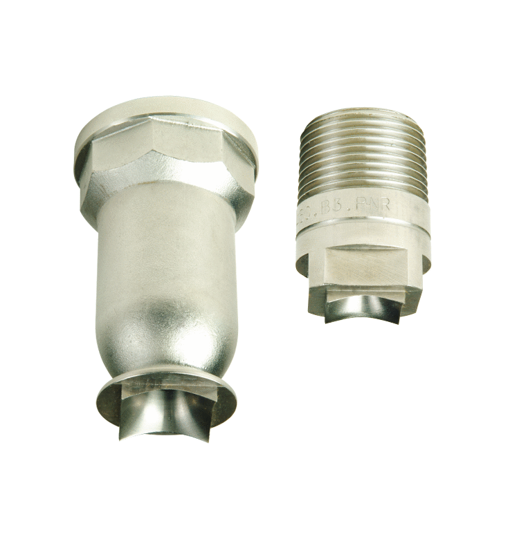 BF|BH系列實⼼⽅錐形噴嘴,其⽅錐形的噴霧幅,針對某些需要良好覆蓋均勻度的⽤途非常合適。