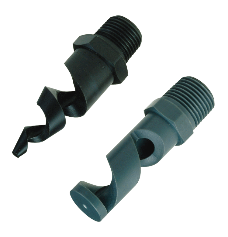 E系列實⼼圓錐形噴嘴特殊的螺旋設計,⽤來取代傳統的噴嘴擾流葉片,螺旋式噴嘴的入⼝與出⼝幾乎⼀樣⼤,不但能夠有效抑制噴嘴發⽣堵塞的機會,更能在相同的螺牙尺⼨時提供更⼤的噴霧量。