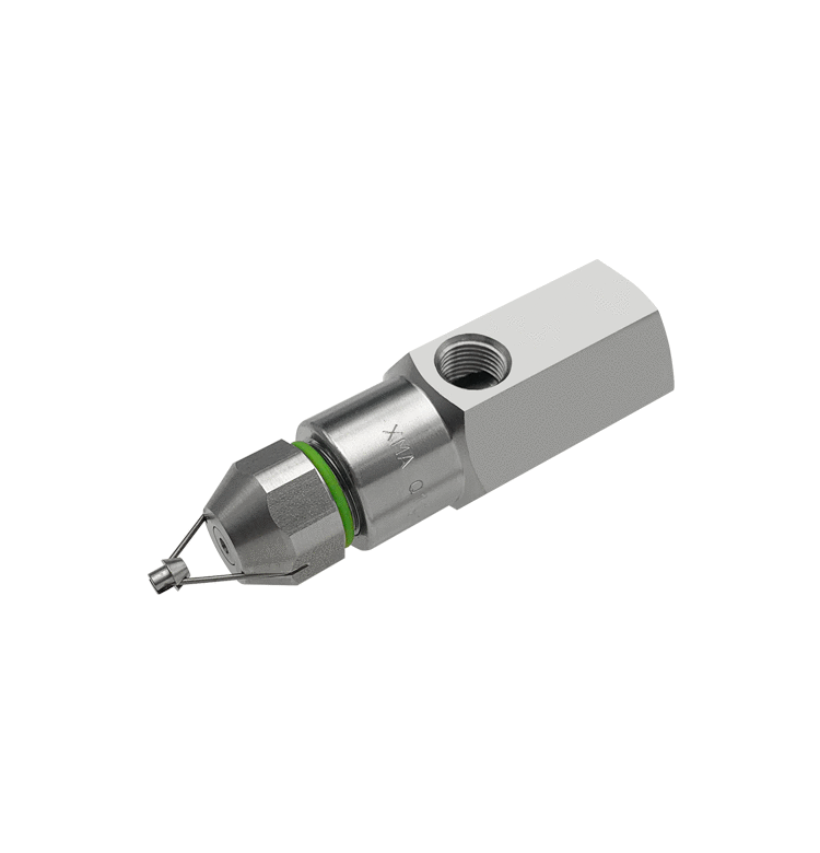 MA系列超音波霧化噴嘴不僅能夠產⽣極微⼩的霧化粒⼦(最⼩平均粒徑:7 Micron),與⼀般的⼆流體噴嘴相較,MA系列超音波霧化噴嘴所產⽣噴霧粒徑更為均勻⼀致,這項優點對於許多的應⽤來說,都是極為重要的。