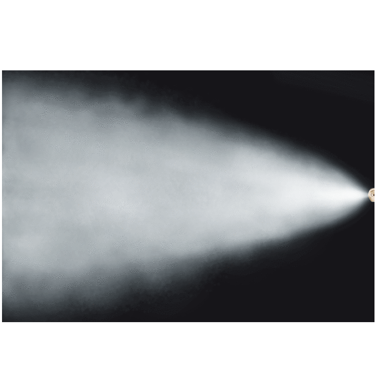 本系列扇形噴嘴,屬於壓⼒型內混式,液體必須經由加壓後輸送⾄噴嘴,液體與壓縮空氣先在噴嘴內部的混合室(Mixing Chamber)均勻混合,再經由噴嘴噴出,內部混合式噴嘴的最⼤優點是霧化液滴微⼩均勻,適⽤在低黏度、不易結晶的液體噴霧應⽤。